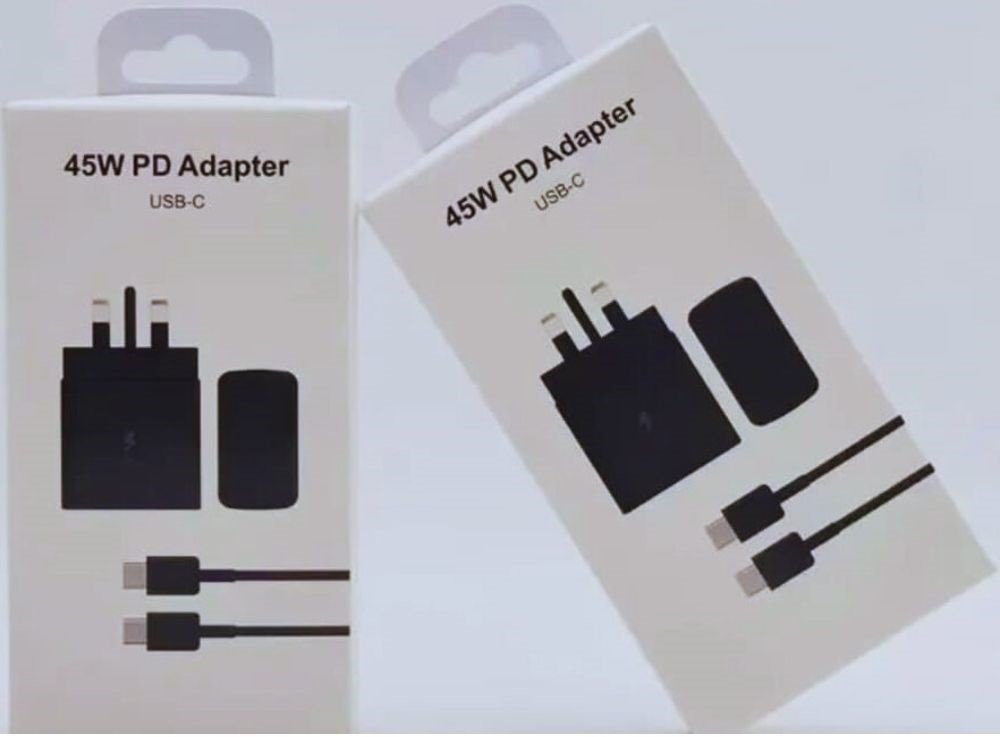 - Samsung 45W USB-C Wall Charger (EP-T4511): 1.8m cable included, specifically designed for Samsung Super Fast Charging 2.0.